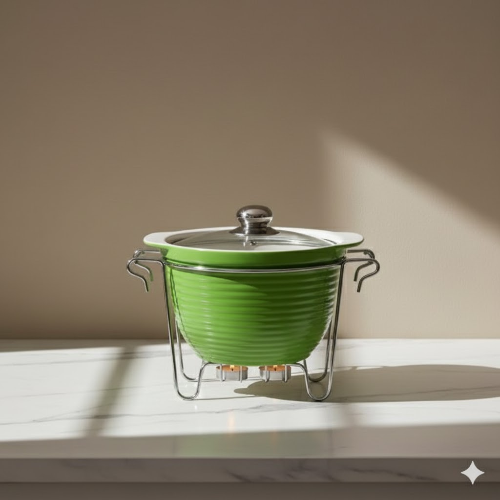 “سوفله خوری چینی بزرگ رنگی یونیک کد 8528” ساخته شده از سه قسمت مجزا است. ظرف از جنس چینی در داخل برای قرار دادن غذا. دستگیره درب و وارمر از جنس استیل ضد زنگ درجه یک. و درب شیشه ای. مناسب برای سرو انواع غذا به صورت سرد و گرم. زیر دو عدد ظرف یک جا شمعی تعبیه شده و گرمای کافی برای گرم نگه داشتن انواع غذا ها را تامین میکند. بدنه شیار دار و دسته های زیبای این محصول ظاهری بسیار زیبا و مناسب مهمانی ها یا استفاده روزمره دارد.