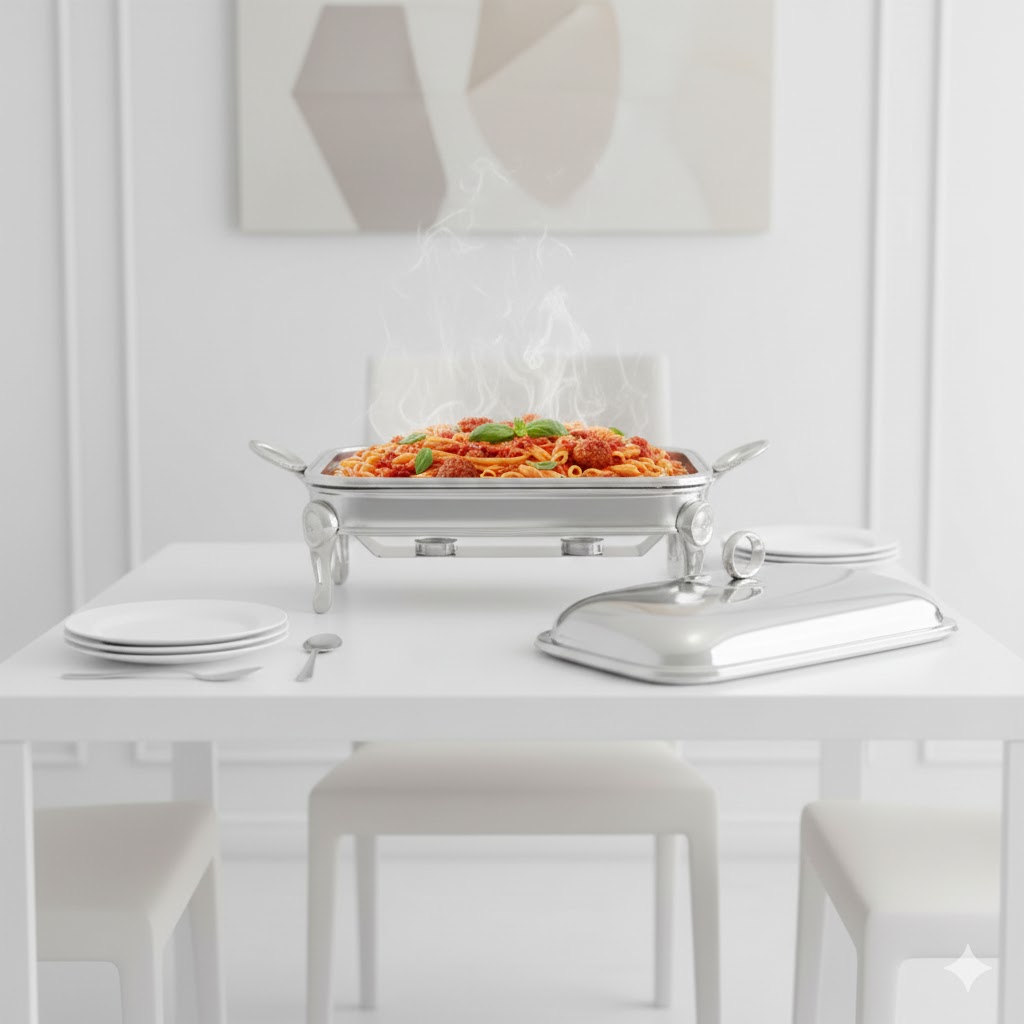 “سوفله مستطیل متوسط نگین دار یونیک کد 3604” ساخته شده از دو قسمت مجزا است. ظرف پیرکس فرانسه داخلی برای قرار دادن غذا و بدنه و درب از جنس استیل ضد زنگ 10-80 درجه یک. مناسب برای سرو انواع غذا به صورت سرد و گرم. زیر این ظرف دو جا شمعی تعبیه شده و گرمای کافی برای گرم نگه داشتن انواع غذا ها را تامین میکند. بدنه براق و دسته های زیبای این محصول ظاهری بسیار لوکس و مناسب جشن ها و تشریفات خاص شما دارد.