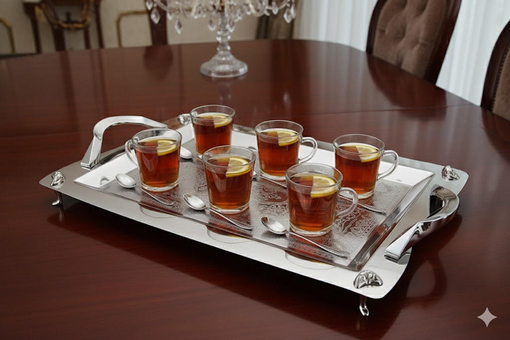 - کاربردهای متنوع: این سینی علاوه بر استفاده برای پذیرایی، میتواند به عنوان یک قطعه دکوراتیو نیز مورد استفاده قرار گیرد.