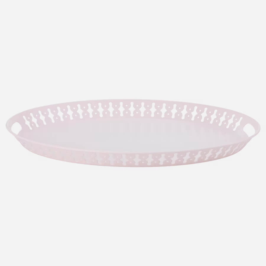 سینی فلزی ایکیا IKEA-ROMANTISK، یک سینی کاربردی و در عین حال ساده است. این سینی از فولاد با پوشش رنگ اپوکسی صورتی روشن تولید شده است. به همین دلیل بهتر است از شستشوی آن با ماشین ظرفشویی خود داری کنید.