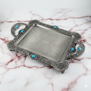- پایهها: هر سینی دارای چهار پایه فلزی کوچک است که از تماس مستقیم سینی با سطح جلوگیری میکند و به آن ثبات میبخشد.