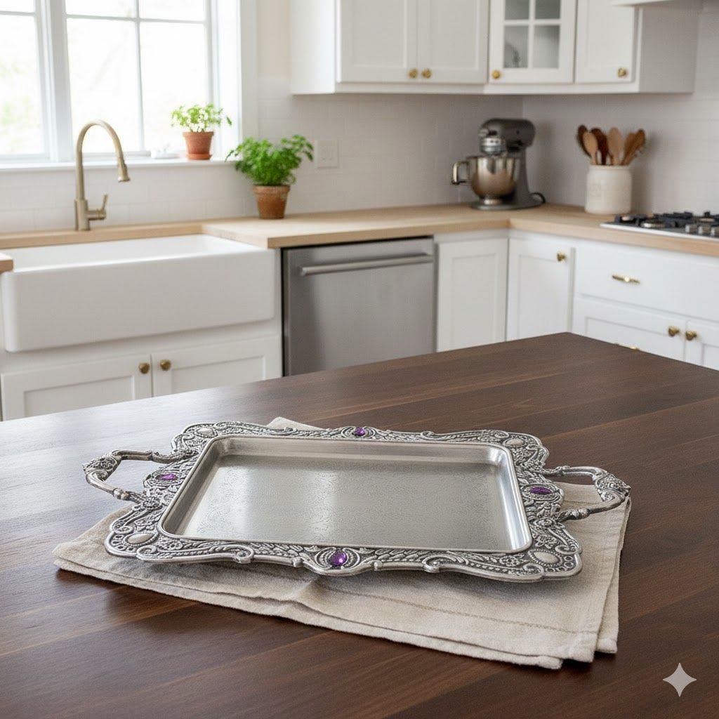 سینی پیوتر کوچک نگین دار بنفش یونیک کد 1527 (خارجی ضد زنگ)