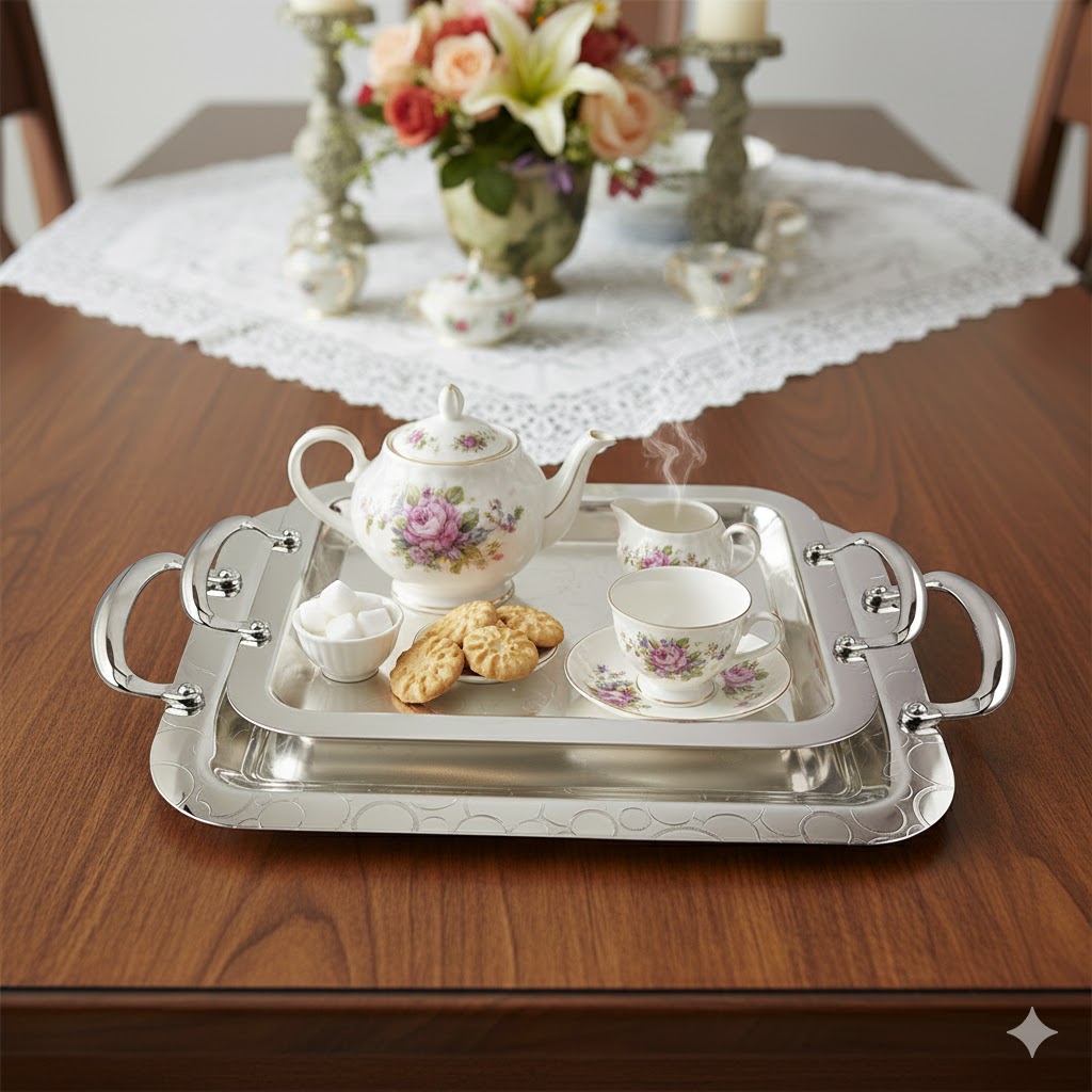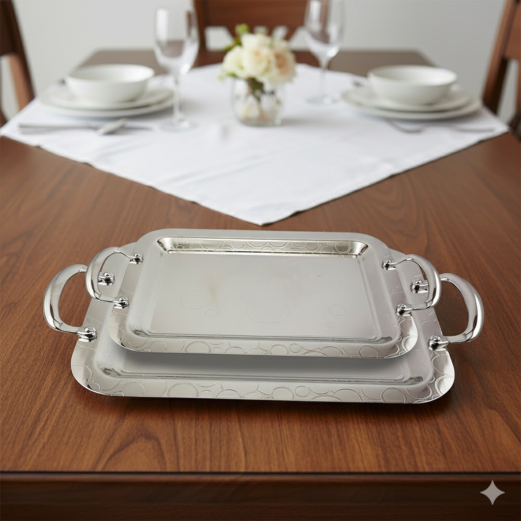 شرکت یونیک که برندی معروف در زمینه تولید لوازم آشپزخانه است، دست به تولید انواع سینی در سایز ها و طرح های مختلف زده است. “سینی کروم دو تکه یونیک کد 1613” شامل دو عدد سینی تمام استیل و با کیفیت بالا است. این سینی ها دارای دو دسته استیل تزیین شده اند. سادگی و دوام این محصول مناسب استفاده ی روزمره میباشد.