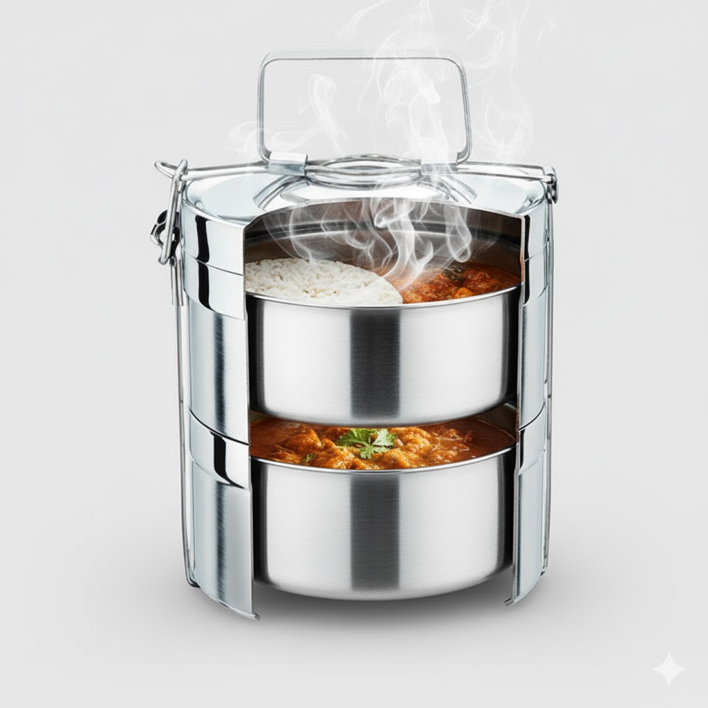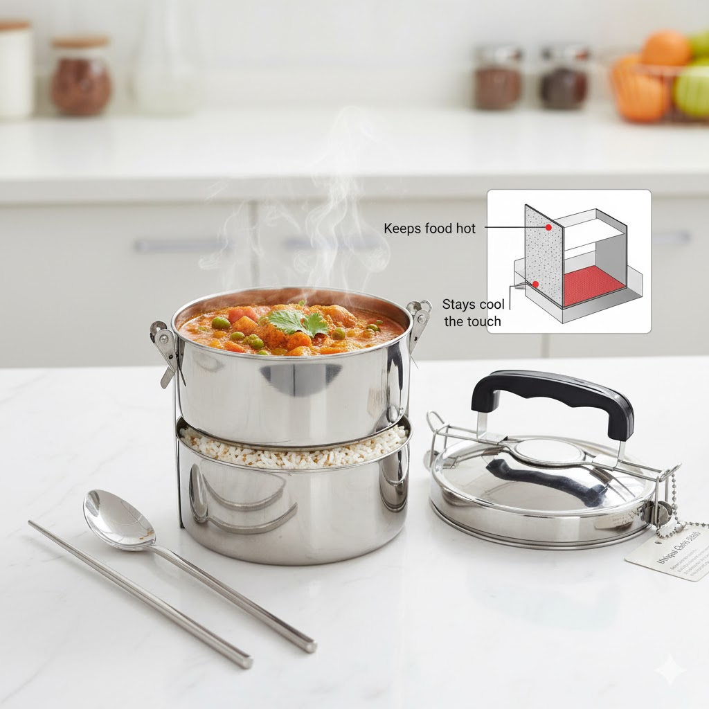 ظرف غذای 2 طبقه استیل دو جداره یونیک کد 2630 (خارجی)