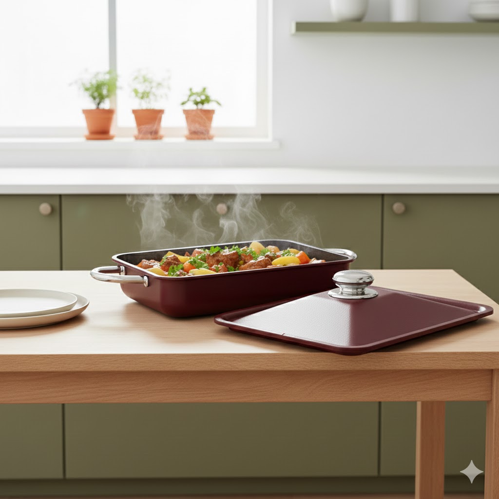 - کاربری متنوع: این ظرف برای پخت و سرو انواع غذاها مانند لازانیا، گراتن، خورشت و انواع دسرها مناسب است.