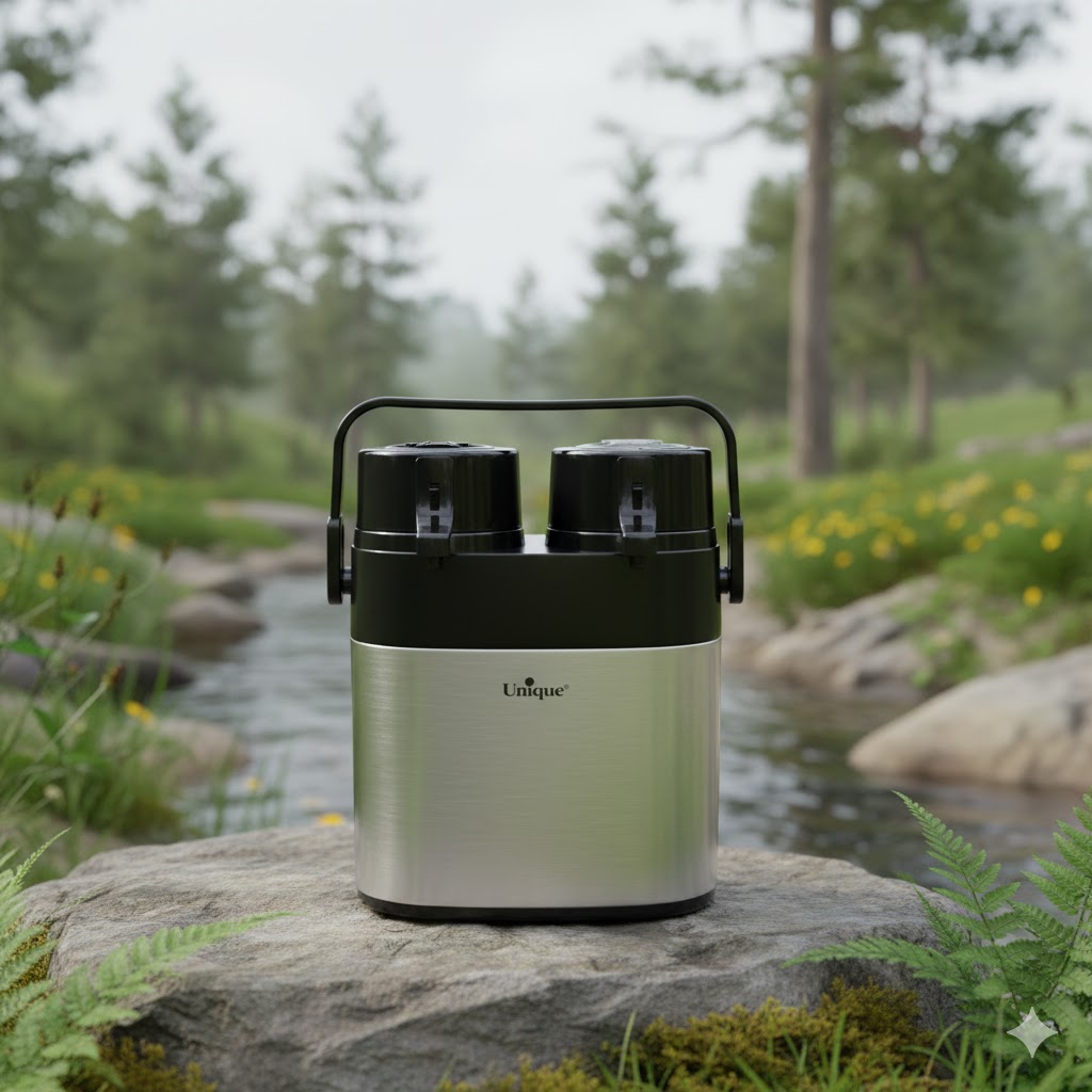 یکی از ضروری ترین ابزار برای هر مسافرتی یک فلاسک خوب است.برای کسانی که به مقدار زیادی فضا برای نگه داری نوشیدنی های گرم و سرد نیاز دارند؛مانند خانواده های پر جمعیت،“فلاسک دو قلو 1+1 لیتر صادراتی یونیک 9040” محصولی زیبا و همانند دیگر فلاسک های یونیک محصولی با کیفیت و مناسب است. با داشتن این فلاسک دو قلو میتوانید همزمان دو مایع مختلف به صورت جداگانه نگه داری کنید و نیاز به حمل دو فلاسک جدا ندارید. این فلاسک قابلیت حفظ دما تا 12 ساعت جوش و تا 24 ساعت گرم نگه می دارد و بدنه آن از استیل ضد زنگ و داخل شیشه درست شده است. این محصول تحت لیسانس انگلیس ساخت ایران است. این محصول در رنگ ها و طرح های مختلف موجود و قابل سفارش است. لطفا هنگام خرید رنگ مورد نظر خود را انتخاب کنید. فلاسک هایی که جنس داخلی آنها از استیل است به نسبت فلاسک های شیشه ای مقاومت بیشتری دارند؛ اما در صورت وارد شدن ضربه شدید مانند زمین خوردن از ارتفاع از قابلیت عایق آنها کاسته میشود. از طرف دیگر در فلاسک های شیشه تعویض شیشه در صورت شکست بسیار آسان و کم هزینه است. با توجه به محصولات مشابه داخل بازار، خریداران گرامی حتما به لوگوی شرکت unique بر روی محصول دقت کنند. محصولاتی که زیر برند یونیک ،نام کشور و یا High Quality درج شده است فاقد گارانتی و محصولات شرکتی یونیک نمی باشند.