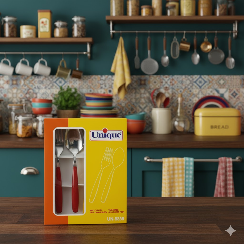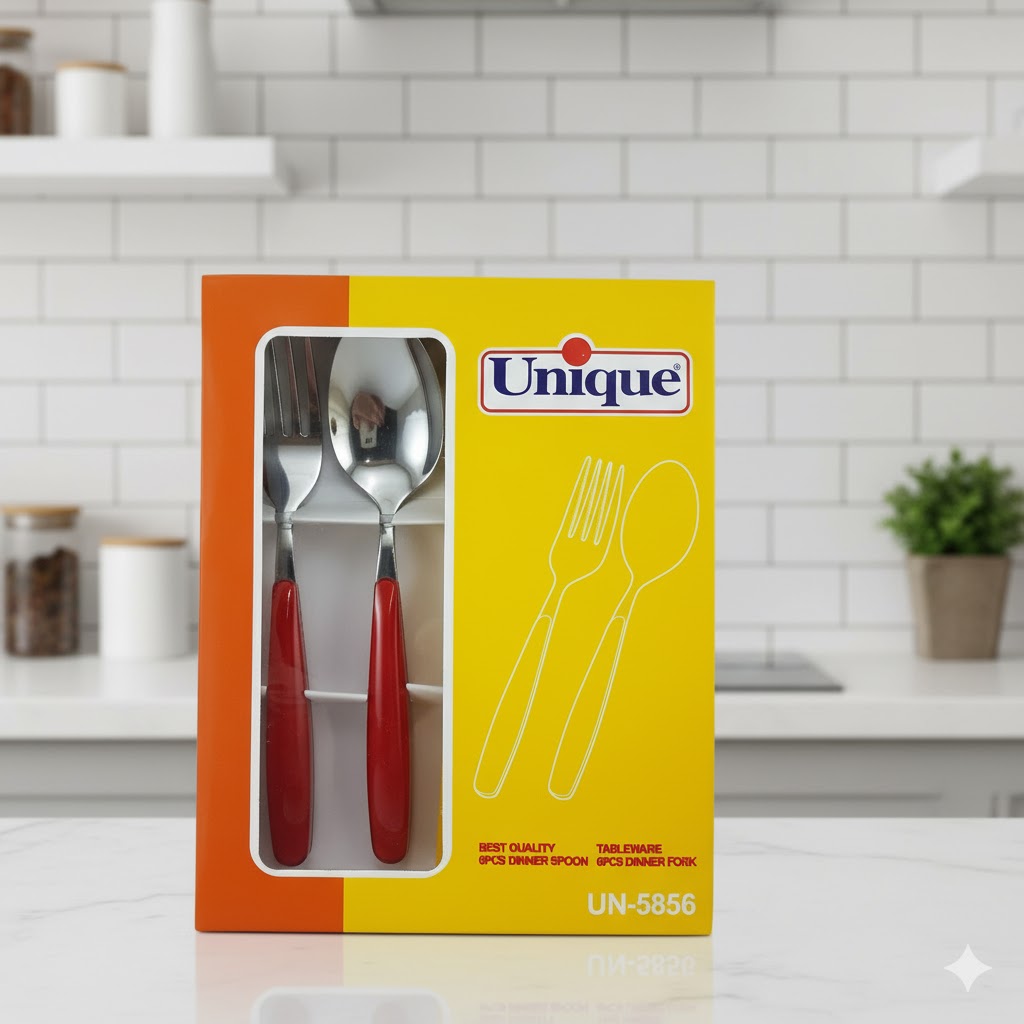 “قاشق و چنگال گرند 12 پارچه یونیک کد 5856” ساخته شده از استیل ضد زنگ 10/80 با ضخامت مناسب و بسیار با دوام است. دسته های این مدل دارای یک روکش از پلاستیک با کیفیت اند که حتی با شستشو در ماشین ظرف شویی دچار کدری و رنگ پریدگی نمیشوند. این روکش ها به خوش دست یو زیبایی این ابزار افزوده اند.