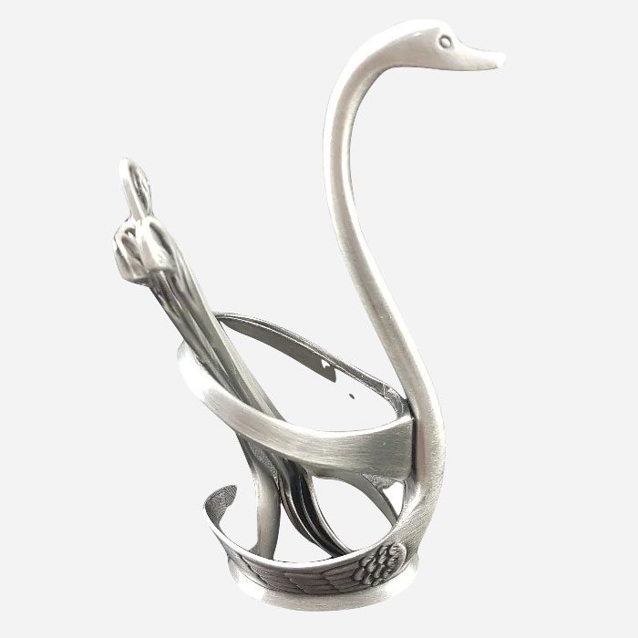 این ست قاشق فانتزی، از جنس پیوتر است. محصول “قاشق چایخوری پیوتر قو یونیک کد1377 ” شامل یک عدد استند قاشق به شکل قو. و 6 عدد قاشق چایخوری است.جنس خاص این محصول بطوری است که نه زنگ زدگی پیدا میکند و نه سیاه می شود.طول قاشق چایی خوری 13 سانتیمتر میباشد