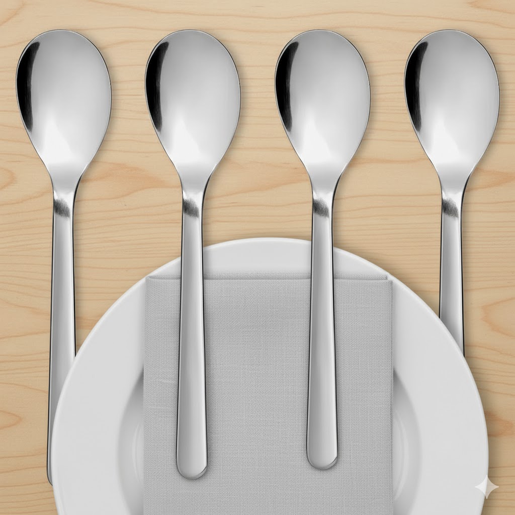 قاشق چایی خوری ایکیا ساده و زیبا که به هر سفره ای می آید. قاشق چایی خوری ایکیا IKEA-FÖRNUFT شامل 4 عدد ابزار پذیرایی است. این محصول از جنس استیل ضد زنگ میباشد. ارتفاع این قاشق ها 14 سانتیمتر میباشد.
