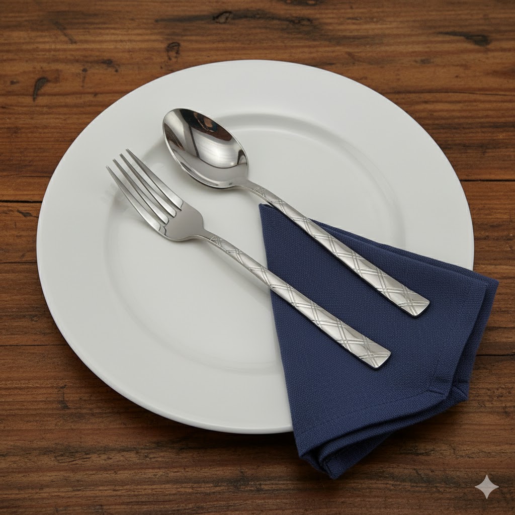 انتخاب قاشق و چنگال غذا خوری تکمیل کننده یک سفره زیبا است. تنوع رنگ و طرح بسیار زیاد قاشق و چنگال ها دست شما را برای انتخاب یک ست مناسب برای میز غذای شما باز میگذارد.جدای از ظاهر زیبای قاشق و چنگال از مهمترین ویژگی های لازم که باید به آنها توجه کرد، جنس و استحکام فلز به کار رفته در قاشق و چنگال است. اگر از جنس مرغوبی در تهیه آن استفاده نشده باشد ممکن است هنگام استفاده خم شود یا به دلیل سنگینی بیش از حد دست شما و مهمانان عزیزتان خسته شود. بهترین جنس برای تولید یک قاشق یا چنگال استیل ضد زنگ 10/80 ایت. این فلز در برابر زنگ زدگی کاملا محفوظ است و تا سالهای سال سالم جزوی از وسایل غذا خوری شما باقی می ماند.