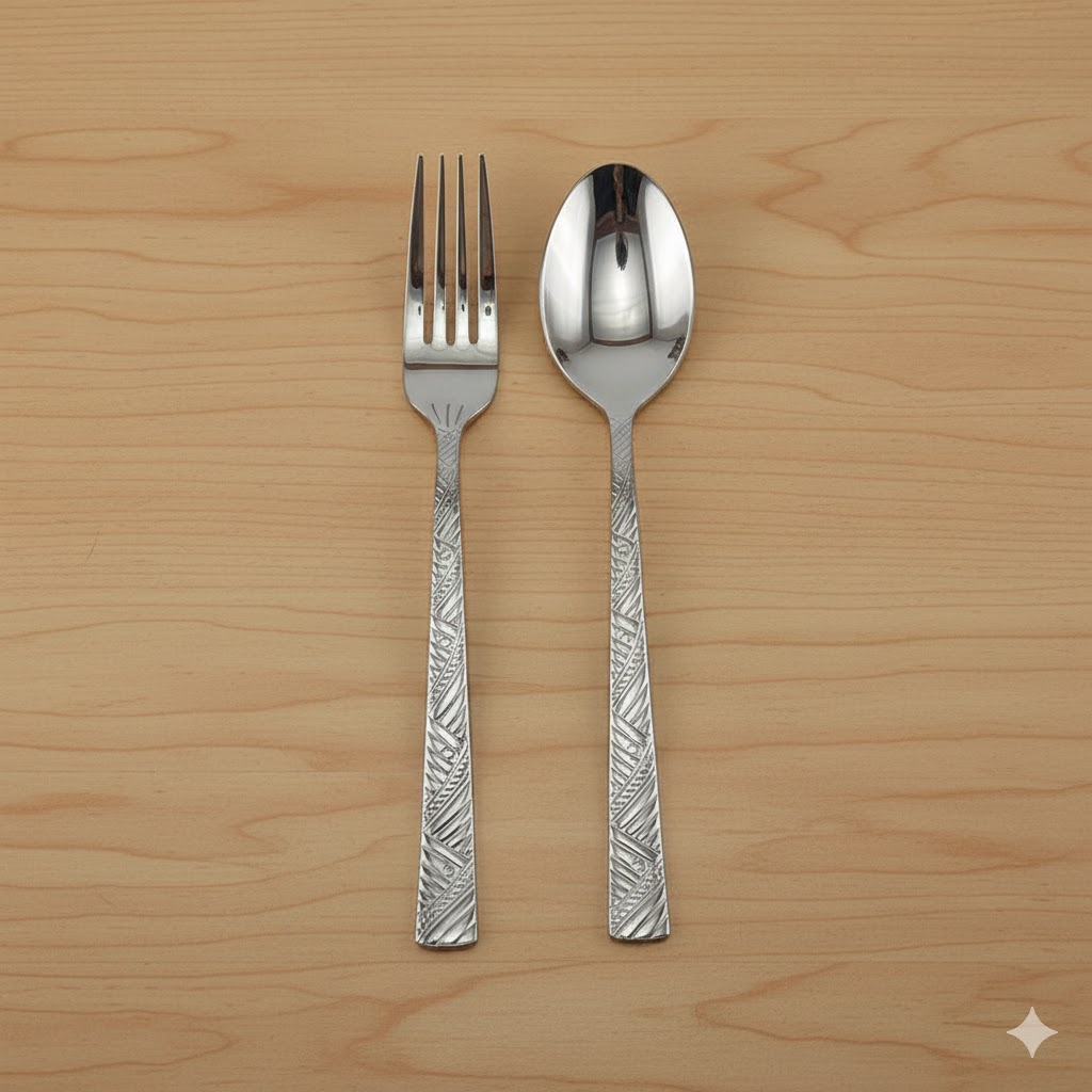 انتخاب قاشق و چنگال غذا خوری تکمیل کننده یک سفره زیبا است. تنوع رنگ و طرح بسیار زیاد قاشق و چنگال ها دست شما را برای انتخاب یک ست مناسب برای میز غذای شما باز میگذارد.جدای از ظاهر زیبای قاشق و چنگال از مهمترین ویژگی های لازم که باید به آنها توجه کرد، جنس و استحکام فلز به کار رفته در قاشق و چنگال است. اگر از جنس مرغوبی در تهیه آن استفاده نشده باشد ممکن است هنگام استفاده خم شود یا به دلیل سنگینی بیش از حد دست شما و مهمانان عزیزتان خسته شود. بهترین جنس برای تولید یک قاشق یا چنگال استیل ضد زنگ 10/80 ایت. این فلز در برابر زنگ زدگی کاملا محفوظ است و تا سالهای سال سالم جزوی از وسایل غذا خوری شما باقی می ماند.