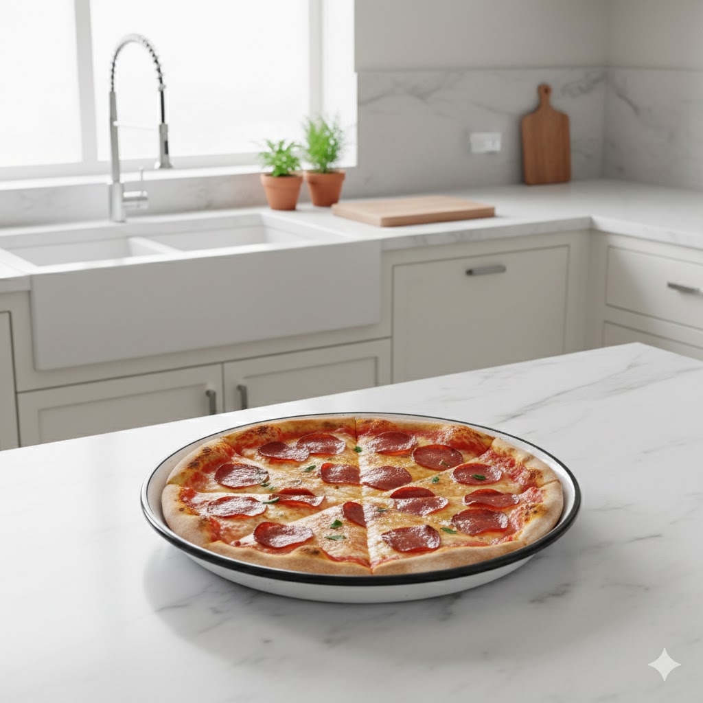 قالب پیتزا لعابی سایز 23 محصول جدید چینی در سایز 23 سانتی متری می باشد، این محصول مناسب برای پخت کیک و پای سیب و همچنین پیتزا آمریکایی بسیار مناسب است. این قالب ها که از جنس فولاد با پوشش لعابی ساخته شده است. این قالب ها رو میتوان داخل فر و ماشین ظرف شویی گذاشت.