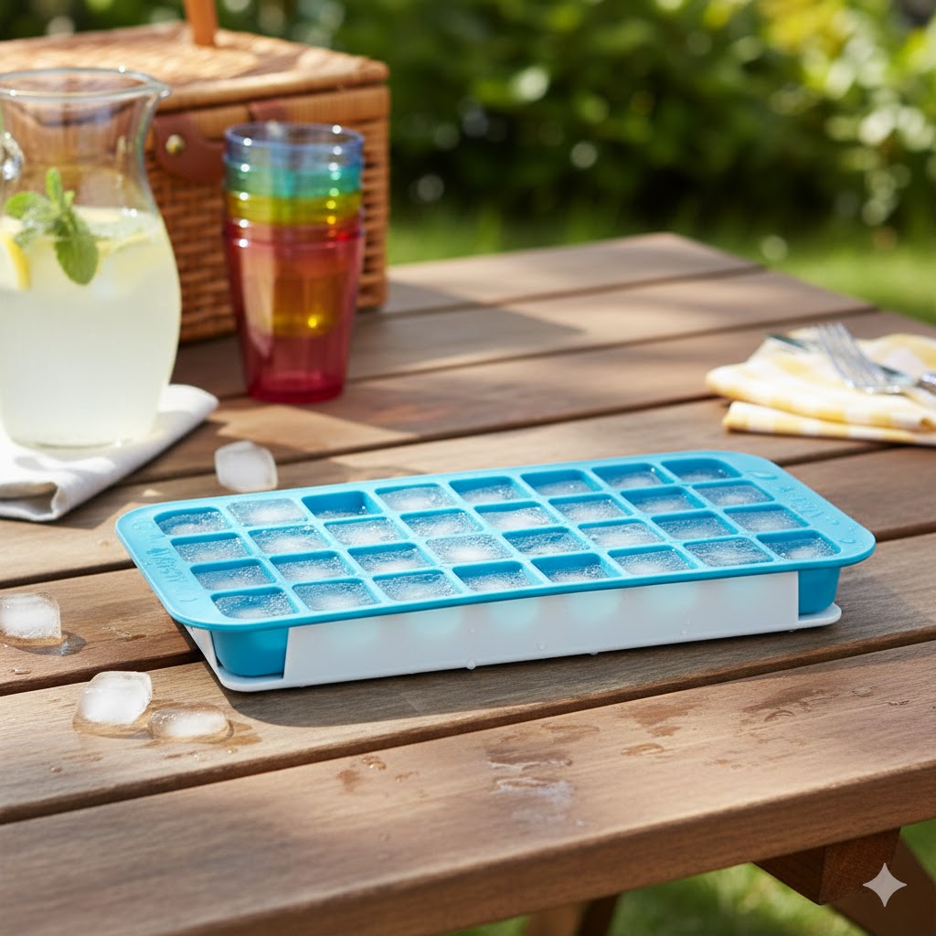 لازم نیست یخ ها همیشه مکعبی باشند. قالب یخ ایکیا IKEA-INBLANDAT شامل 1 قالب یخ آبی رنگ است که شامل 32 تکه یخ می شود این قالب ها از پلاستیک نرم و به رنگ های مختلف ساخته شده اند. پلاستیک نرم باعث میشود بیرون آوردن یخ ها بسیار آسان تر شود.