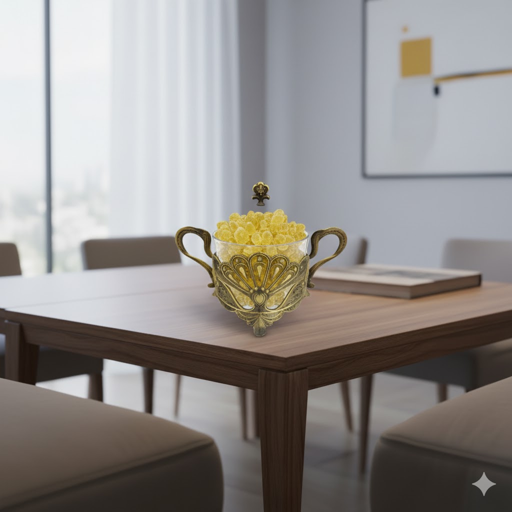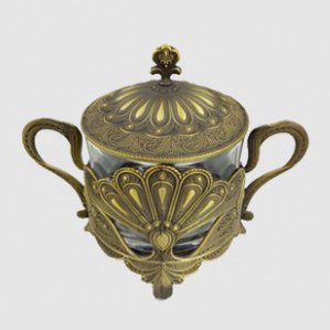 برای کسانی که به زیبایی و دکوراسیون منزل و پذیرایی میهمانان خود اهمیت میدهند وجود یک قندان خاص و زیبا بر روی میز پذیرایی آشکار است. “قندان آنتیک یونیک کد 1319-2” تشکیل شده از ظرفی شیشه ای قرار گرفته بر روی پایه ای از جنس پیوتر که رنگی بین طلایی و مسی دارد. این محصول از جنس آلیاژ پیوتر ساخته شده و روی آن ها با از نقوش برجسته تریین شده است. این طرح ها باعث شده تا این محصولات در طی سال ها زیبایی خود را حفظ کرده و قابل استفاده باشند.