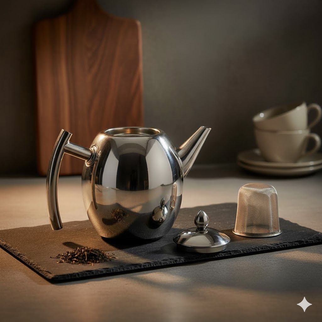 استیل یکی از محبوب ترین متریال ها برای ساخت محصولاتی مثل قوری است. این فلز با مواد غذایی واکنش نمیدهد. از این رو رنگ و مزه مواد را تغییر نمیدهد. همچنین امکان استفاده ظروف استیل روی اجاق های مختلف وجود دارد.