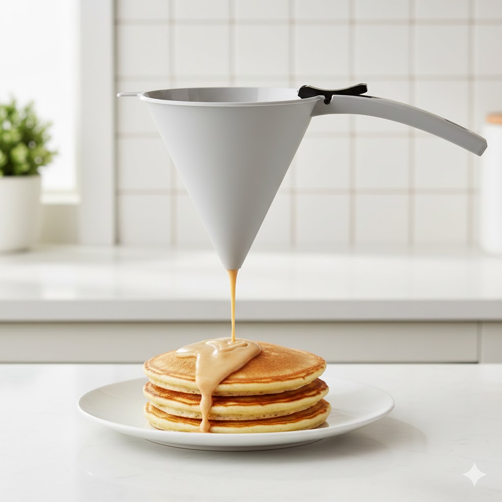 با استفاده از قیف ایکیا IKEA-PORTIONERA میتوانید به طور کنترل شده مایعاتی مثل شکلات و شعد را روی شیرینی ها و داخل قالب بریزید. داخل این قیف خطوط مدرج وجود دارد. یک اهرم که روی دسته ی قیف قرار گرفته به شما کمک میکند تا خروجی آن را باز یا بسته کنید. کافی است انگشتتان را روی اهرم فشار دهید تا جریان مایع قطع شود.