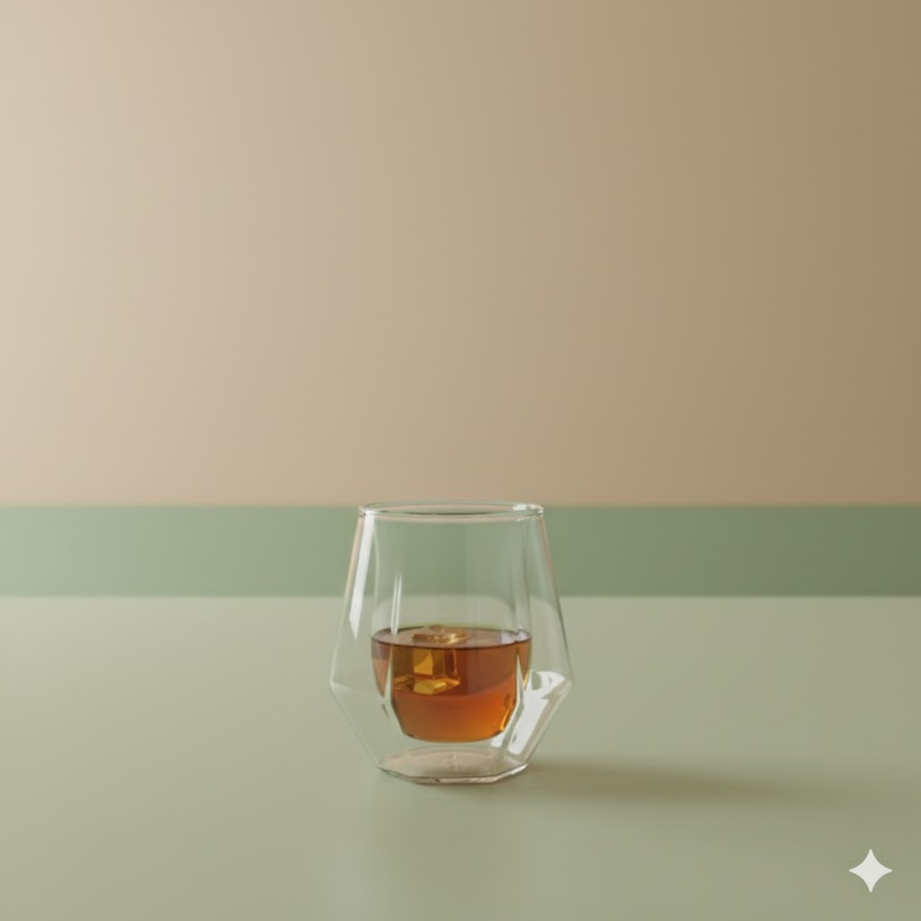 لیوان دوجداره 6 ضلعی دست ساز پیرکس جفتی weimei