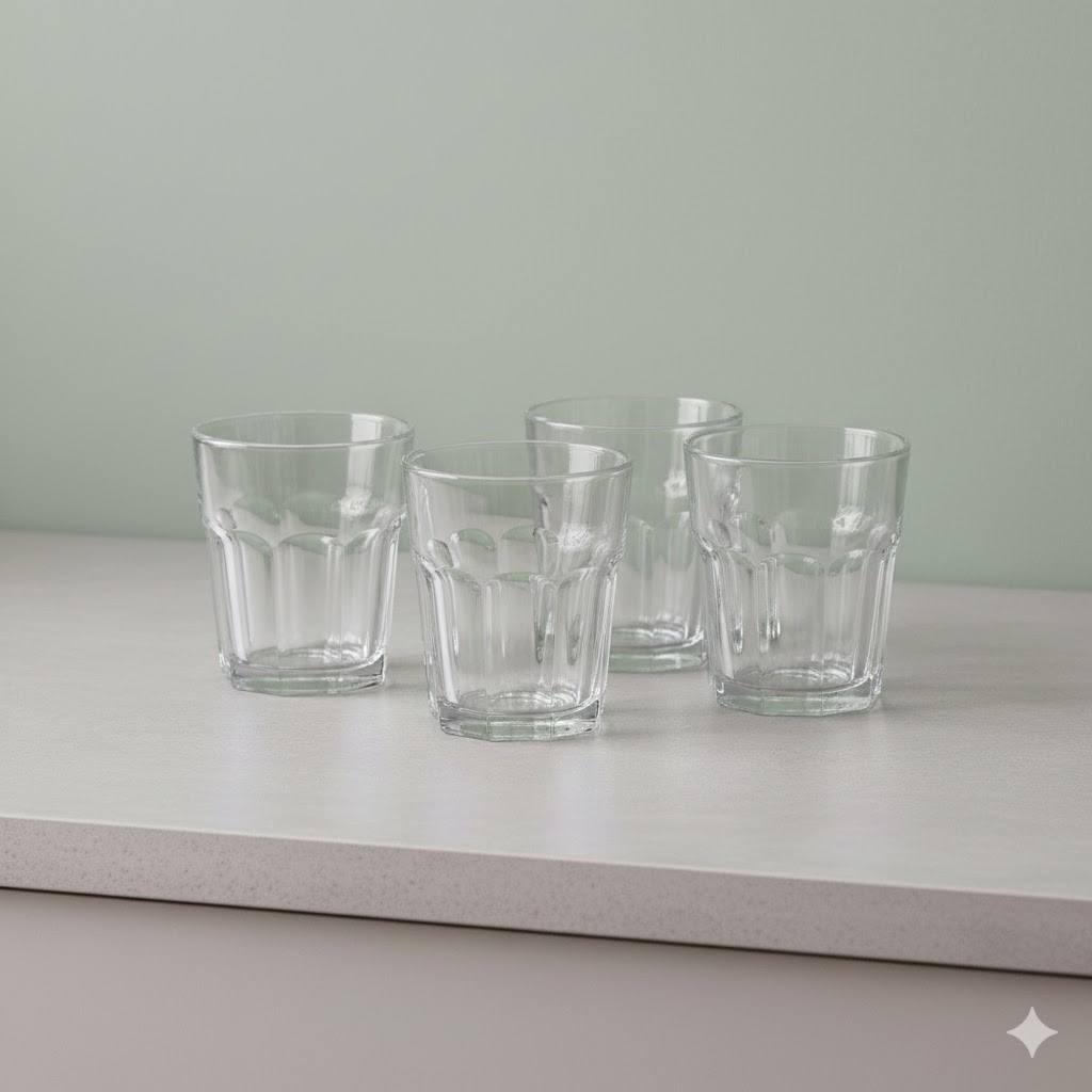شیشه این لیوان ها از نوع سکوریت است. این نوع شیشه در برابر ضربه و گرما مقاومت بالاتری نسبت به شیشه های معمولی دارد.