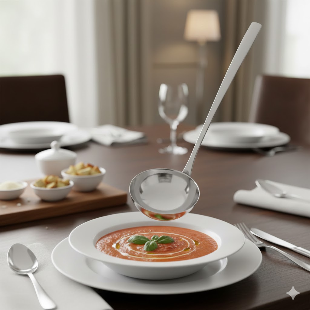 ملاقه بزرگ سوپ فلورانس ناب استیل دارای ارتفاع 29 سانتی متر مخصوص سوپ و خورشت در سفره می باشد. محصولی با کیفیت از جنس استیل ستنلیس، هم اکنون موجود در پرنس هوم می باشد.