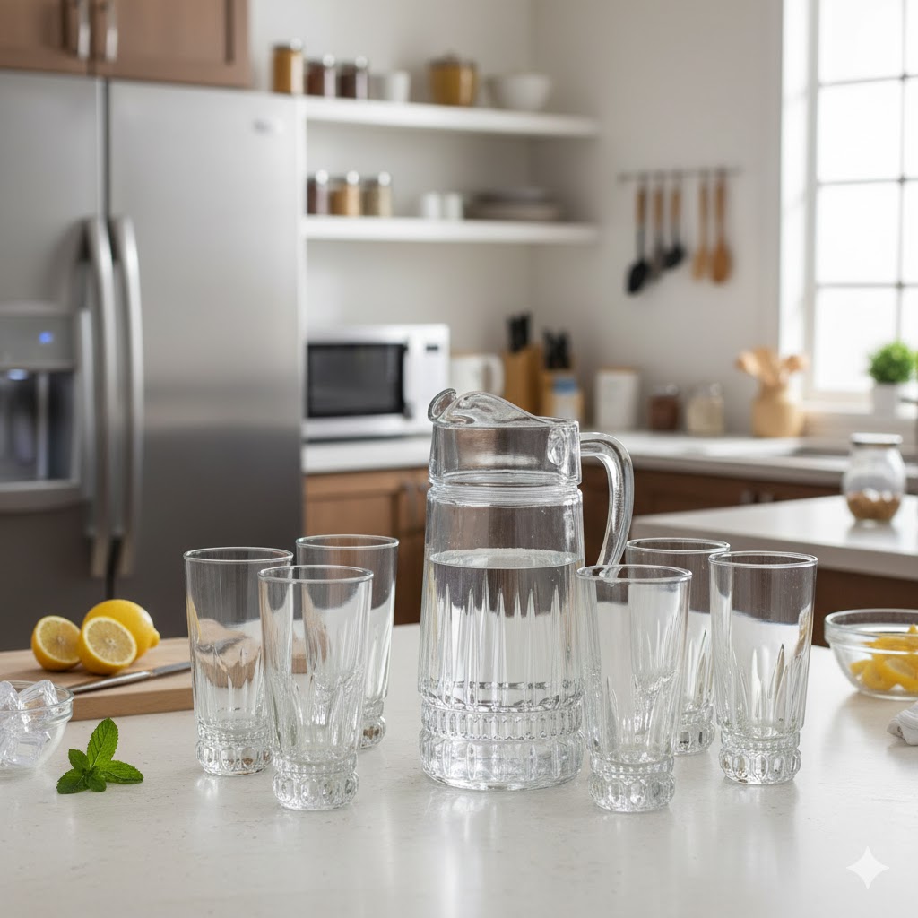 پارچ و لیوان یکی از مهم ترین ملزومات برای پذیرایی می باشد ، همواره می دانیم که بلور و شیشه سالم ترین جنس برای نگهداری و مصرف نوشیدنی می باشد ، اگر چه در گذشته از ظروف سفالی و استیل استفاده میکنند ولی امروزه با پیشرفت تکنولوژی و وسعت صنعت بلور و شیشه ، عموم مردم از بلورجات برای مصرف استفاده میکنند .