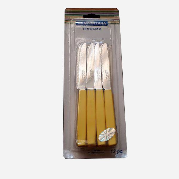 در آشپزخانه نیاز به چاقو های مختلفی دارید. داخل بستهبندی کارد 12 تایی رنگی آرومانتینا 12 عدد کارد میوهخوری گنجانده شده است که برای پذیرایی از 12 نفر کافی است. کاردها دارای تیغهای استیل ضد زنگ و بسیار تیز هستند که هنگام جدا کردن پوست میوهها به اعمال فشار زیاد نیاز نداشته باشید و بهآسانی پوست انواع میوهها را جدا کنید. قسمتهای فلزی این سرویس که به صورت یک تکه است مقاومت و استحکام خوبی در برابر رطوبت دارند و دچار زنگزدگی نمیشوند. خشک کردن کاردها و چنگالها بعد از شستوشو، مانع ایجاد لک روی این قسمتها خواهد شد. روکشی که روی تیغه به عنوان دسته روی تمام اقلام این ست وجود دارد از جنس پلاستیک بادوام هستند از ویژگی های مهم این چاقو میتوان به موارد زیر اشاره کرد: