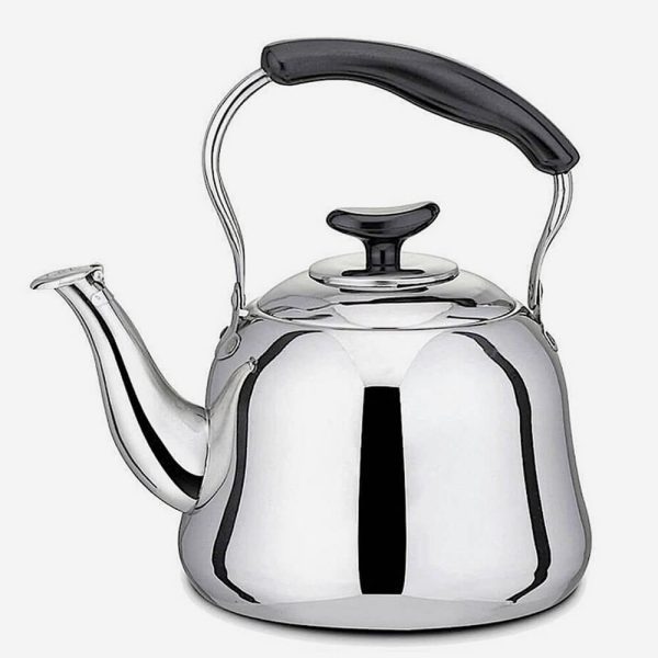 کتری استیل 4لیتر نیوهوم NH09_2504 از استیل ضد زنگ براق و بادوام ساخته شده. این کتری دارای یک دسته کائوچویی (باکالیت) نسوز است. همراه با این کتری یک درب سوت دار و یک صفحه مشبک برای قرار دادن قوری روی کتری عرضه میشود. درب کتری هنگامی که آب جوش بیاید به صدا در می آید و شما را مطلع میکند.