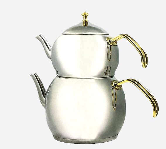 کتری و قوری استیل دسته طلایی 2.5 لیتر لوله دار یونیک 7270