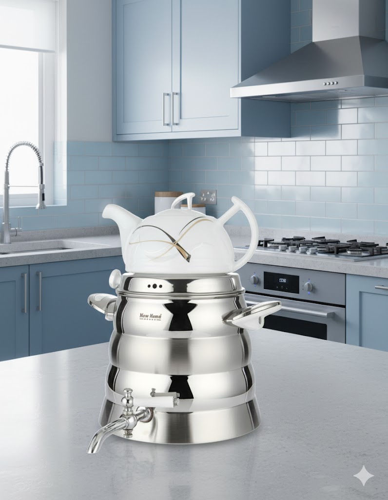 کتری و قوری استیل 5.5 لیتری نیوهوم NH19-1904، یک محصول باکیفیت و زیبا است که برای استفاده روزمره در منزل بسیار مناسب است. اگر به دنبال یک سماور با طراحی مدرن و عملکرد عالی هستید، این محصول می‌تواند انتخاب مناسبی برای شما باشد.