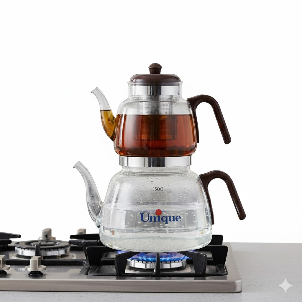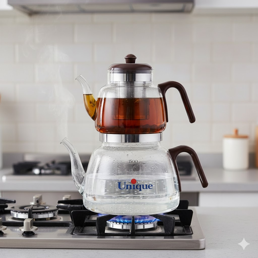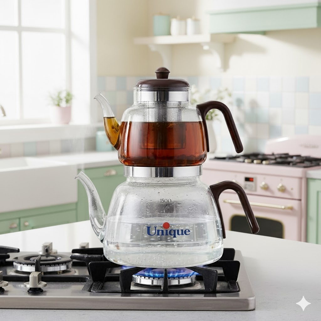 اگر میخواهید هنگام دم کزدن چای و دمنوش بتوانید داخل قوری را ببینید، “کتری و قوری پیرکس یونیک کد 7921” این امکان را به شما میدهد. این ست کتری و قوری علارقم ظرافت بالایی که دارد از شیشه نشکن مقاوم در برابر حرارات تولید شده. پس میتوانید با خیال راحت از آن روی شعله مستقیم اجاق گازی یا برقی استفاده کنید. دسته های این محصول از پلاستیک با کیفیت است و به وسیله یک بست استیل به قوری وصل شده. از ویژگی های این قوری میتوان به موترد زیر اشاره کرد: