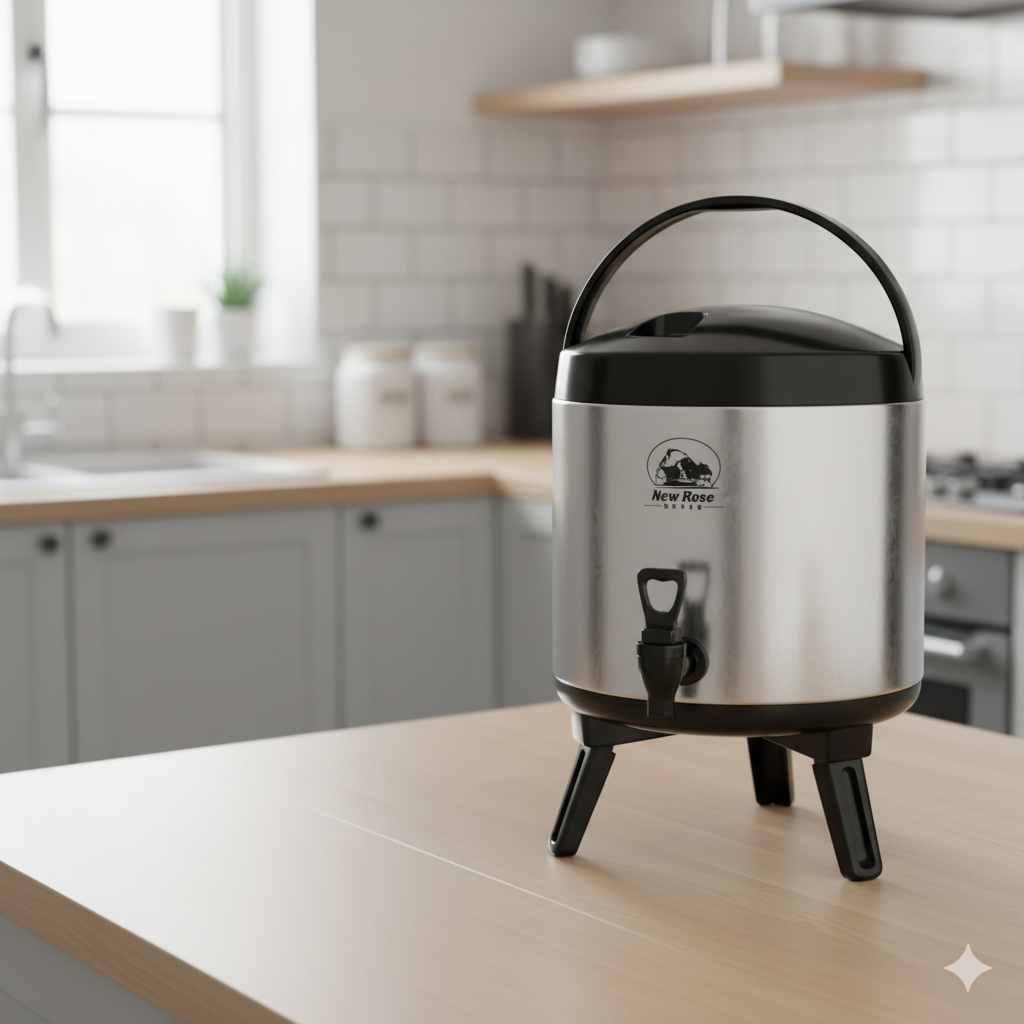 کلمن داخل استیل 6 لیتری دسته باز نیوهوم “کلمن داخل استیل 6 لیتری نیوهوم ” با بدنه استیل در کشور ایران ساخته شده است. این کلمن توانایی حفظ دمای مایع دارد. درب بالایی آن به صورت پیچی است و خروجی به صورت ضامن دار طراحی شده است. این کلمن دارای سه پایه پلاستیکی است که استفاده از آن را روی زمین راحت تر می کند و نیازی به بلند کردن کلمن برای ریختن آب نیست. اقلام همراه: این کلمن همراه با دو لیوان پلاستیکی که درون آن قرارا میگیرند و یک عدد شیر اضافی در اختیار شما قرار میگیرد.