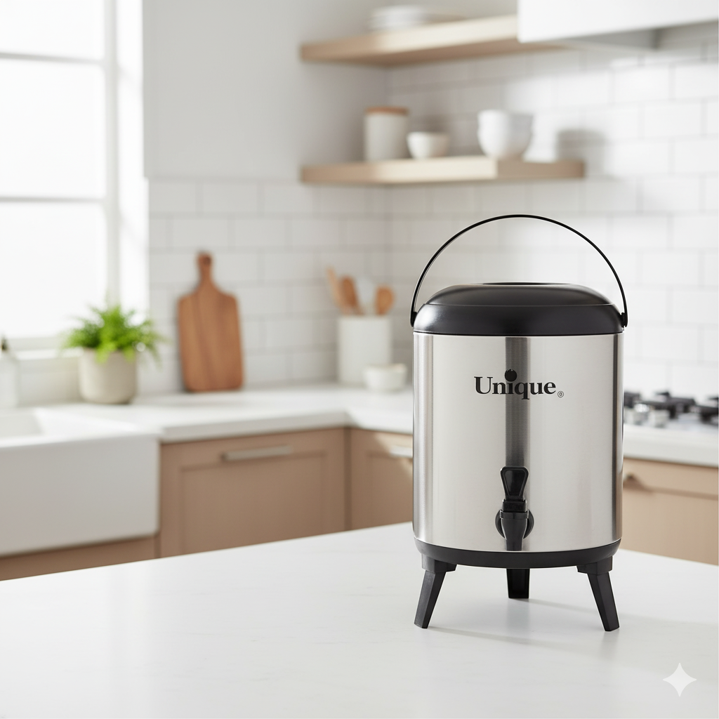 “کلمن داخل استیل 8 لیتری خارجی یونیک کد 7593” با بدنه استیل داخل کشور چین ساخته شده است. این کلمن توانایی حفظ دمای مایع دارد. درب بالایی آن به صورت پیچی است و خروجی به صورت ضامن دار طراحی شده است. این کلمن دارای سه پایه پلاستیکی است که استفاده از آن را روی زمین راحت تر می کند و نیازی به بلند کردن کلمن برای ریختن آب نیست.